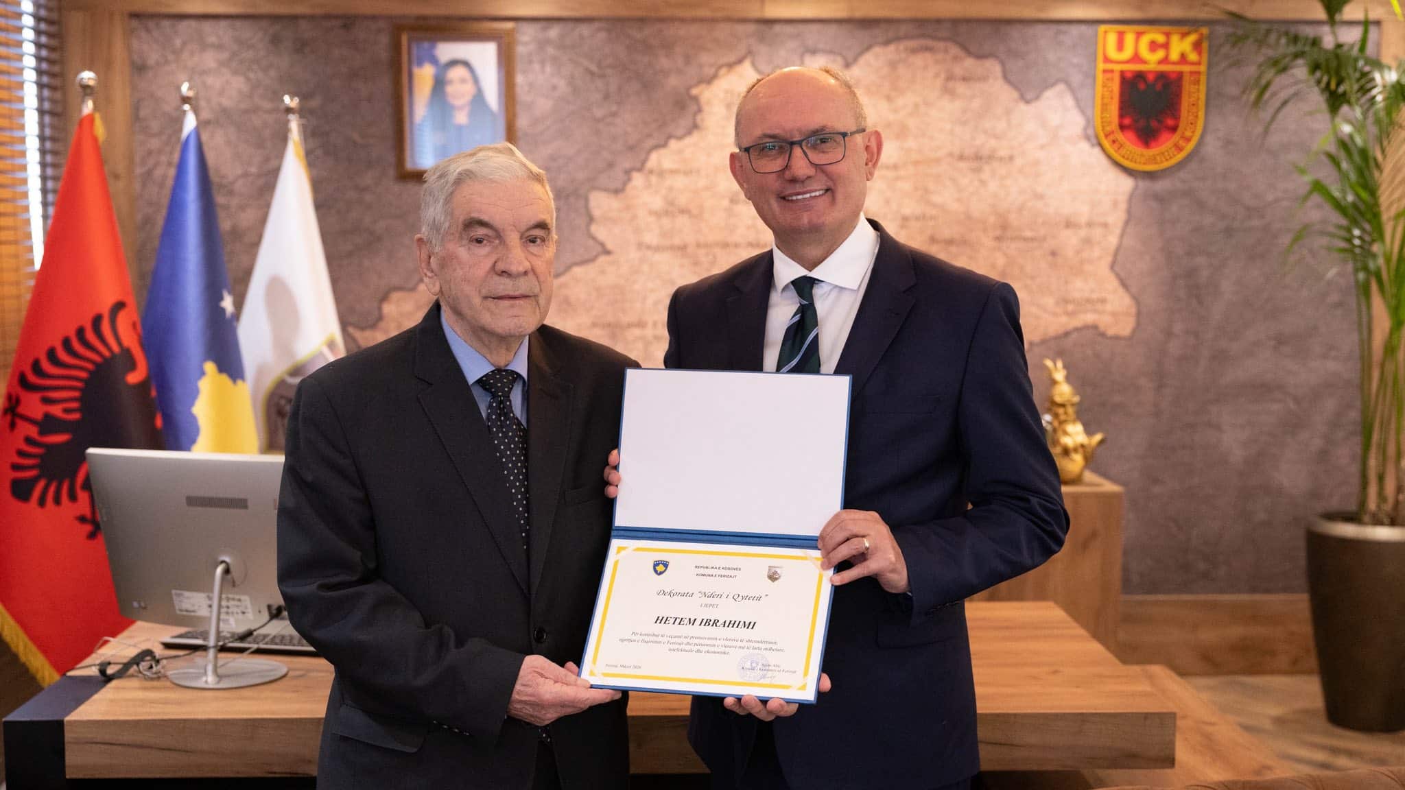 Personalitet që me veprën e tij të jashtëzakonshme la gjurmë të pashlyeshme për Ferizajn, Kryetar i parë i Komunës së Ferizajt të pas çlirimit, veprimtar i dalluar atdhetar, personifikim i intelektualit të mirëfilltë e kontributplotë për shtetin e shoqërinë, vlerë e shtetndërtimit, themelimit e fuqizimit të institucioneve shtetërore, shembull i udhëheqjes dhe vizionit për progresin e ndërmarrjeve ekonomike ku drejtoi e punoi, në vigjilje të 18 vjetorit të Pavarësisë së Republikës së Kosovës, ndava dekoratën “NDERI I QYTETIT”